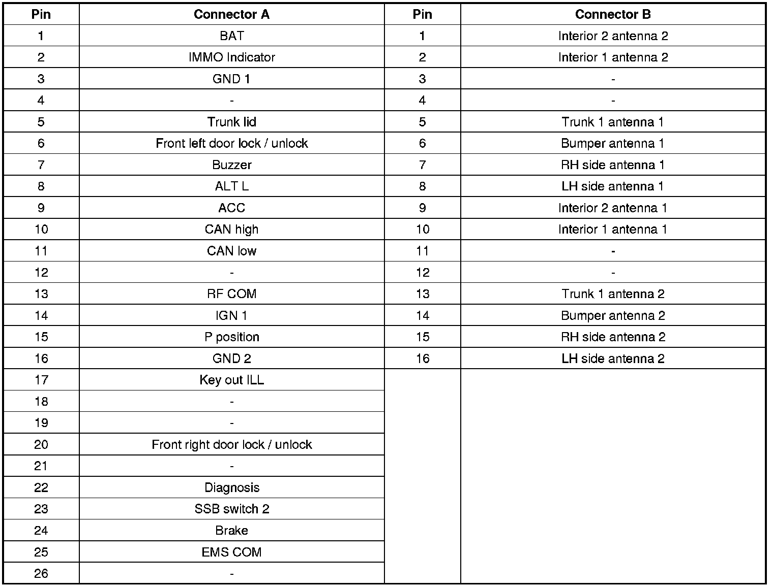 Connector Pin Information