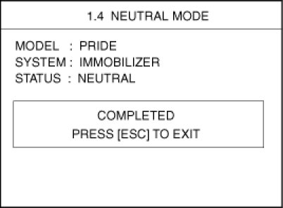 This function is for neutralizing the PCM(ECM) and Key. Ex) when lost key, Neutralize the PCM(ECM) then teach keys. can be set to the "neutral" status by a scanner.If wrong vehicle specific data have been sent to SMATRA three times continuously or intermittently, the SMATRA will reject the request to enter neutral mode for one hour. Disconnecting the battery or other manipulation cannot reduce this time. After connecting the battery the timer starts again for one hour.