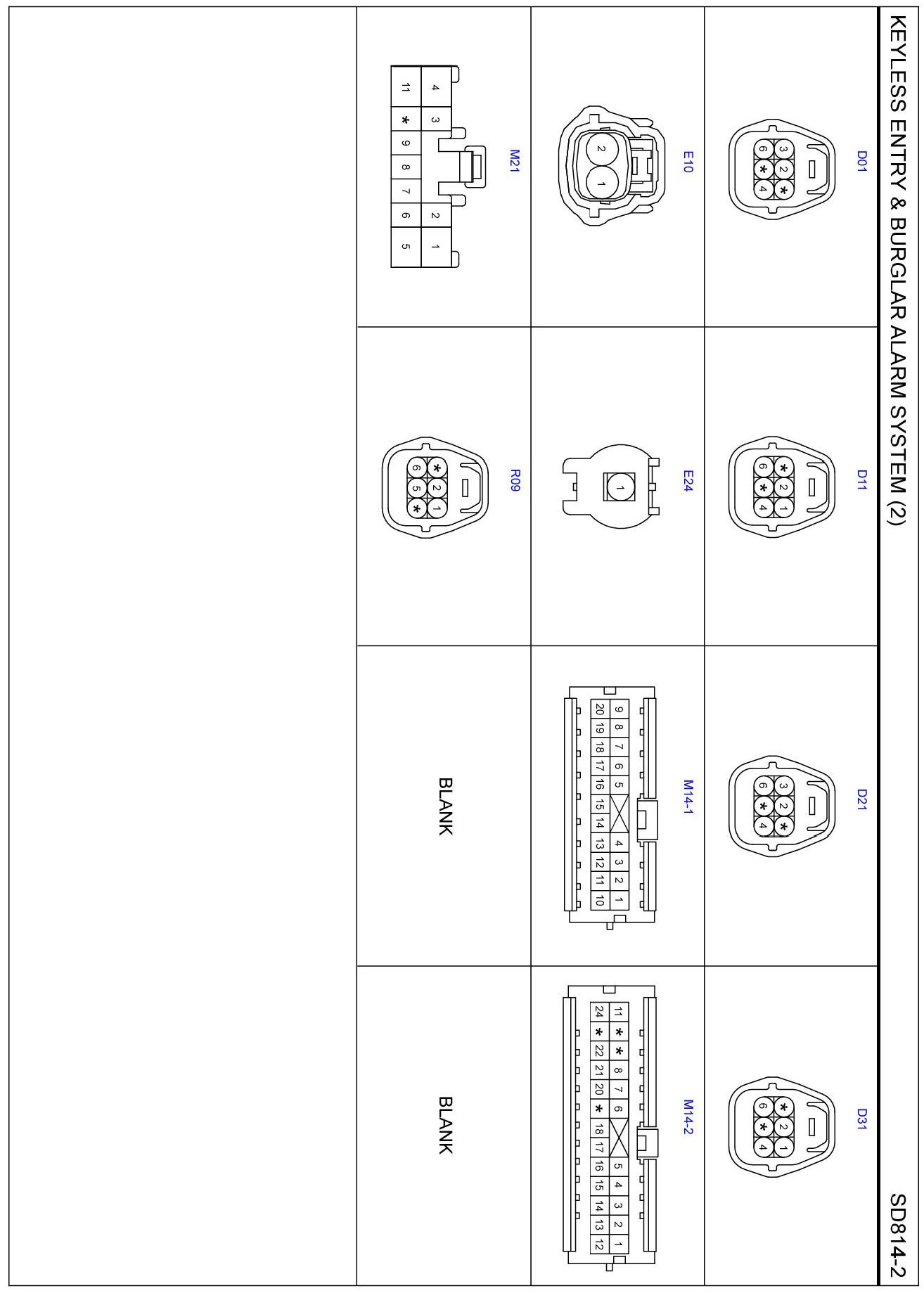Keyless Entry & Burglar Alarm System (2) Connector Pin Outs: