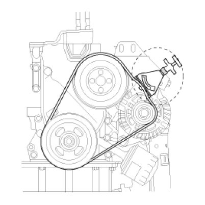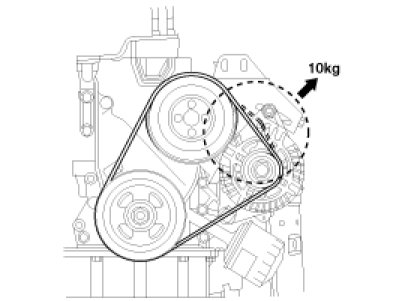 Apply a force of 98N (10kg, 22lb), and measure the deflection between the generator and the water pump pulley.