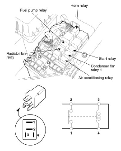 1. There should be continuity between the No.1 and No.4 terminals when power and ground are connected to the No.2 and No.3 terminals.