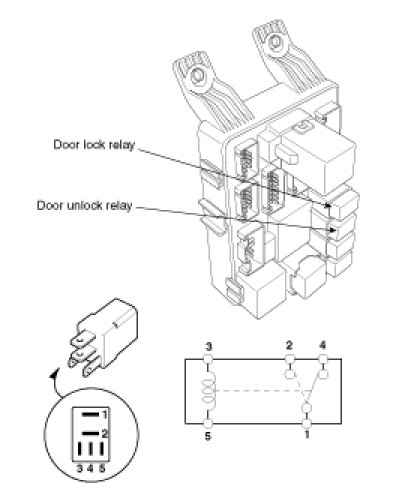 1. There should be continuity between the No.1 and No.2 terminals when power and ground are connected to the No.3 and No.5 terminals.