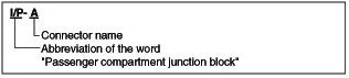 A junction block identification symbol consists of a wiring harness location classification symbol corresponding to a wiring harness location and number corresponding to the connector in the junction block.