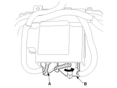 6. Disconnect the SRSCM harness connector(A) and (B) from the SRSCM.