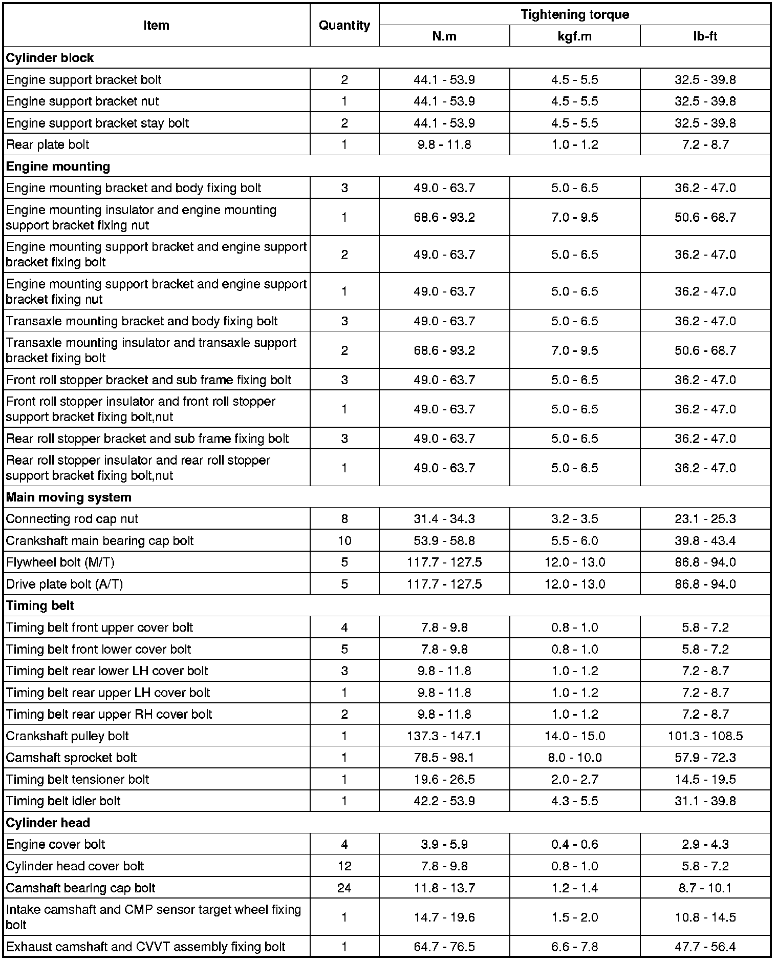 TIGHTENING TORQUES