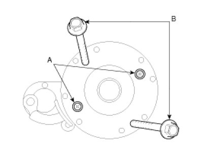 1. Disconnect the M-terminal (A) on the magnet switch assembly (B).