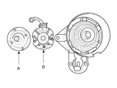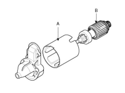 4. Remove the rear bracket (A) and brush holder assembly (B).