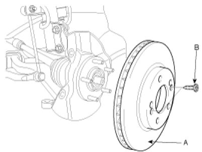 Remove the brake disc from hub using M8 bolt (A) if the brake disc has been seized with the hub due to corrosion or overheat.