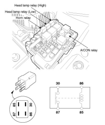 1. There should be continuity between the No.30 and No.87 and 87a terminals when power and ground are connected to the No.85 and No.86 terminals.