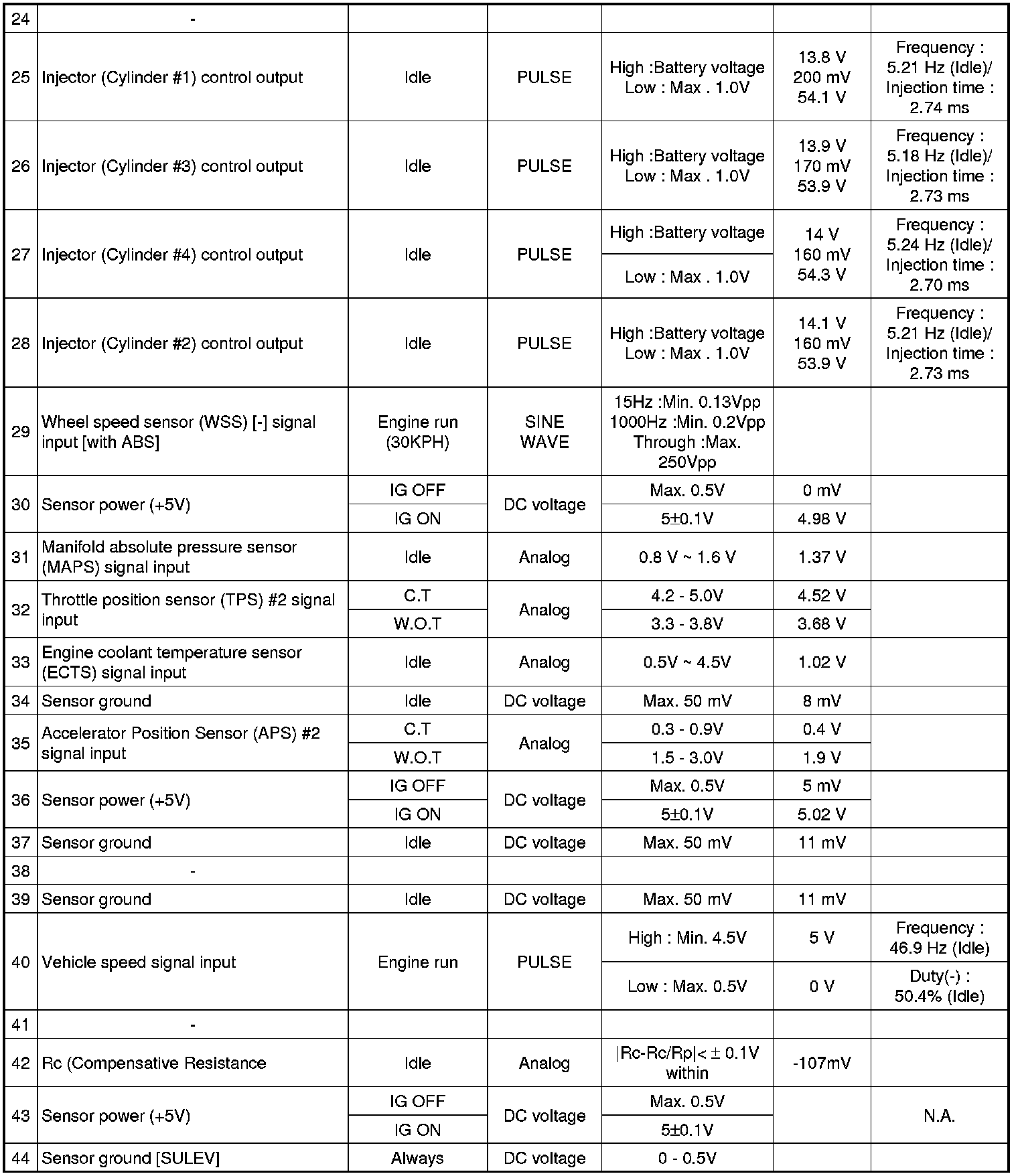 Pinout Values and Diagnostic Parameters