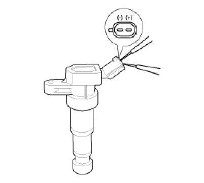 Measure the primary coil resistance between terminals (+) and (-).