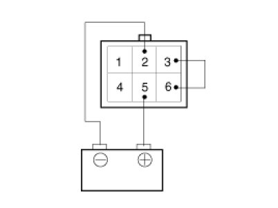 4. Connect the positive (+) lead from the battery to terminal 2 and the negative (-) lead to terminal 5.