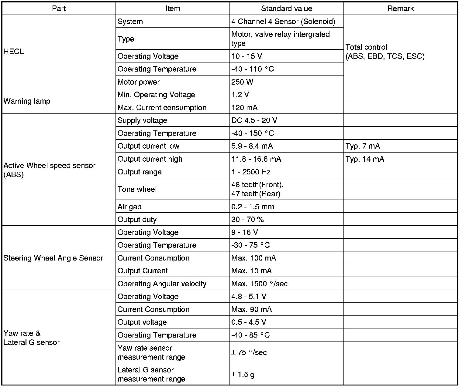 Antilock Brakes / Traction Control Systems: Specifications