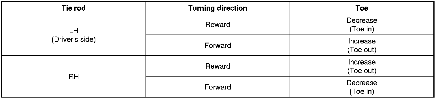 3. Adjust the toe by screwing or unscrewing the tie rod. Toe adjustment should be made by turning the right and left tie rods by the same amount.
