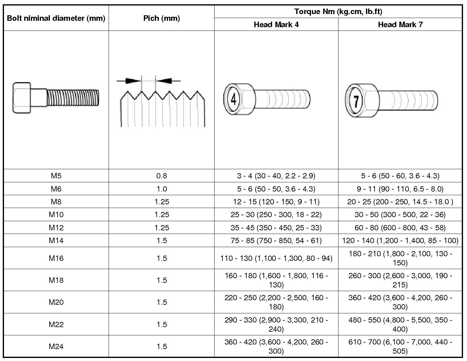 TIGHTENING TORQUE TABLE OF STANDARD PARTS