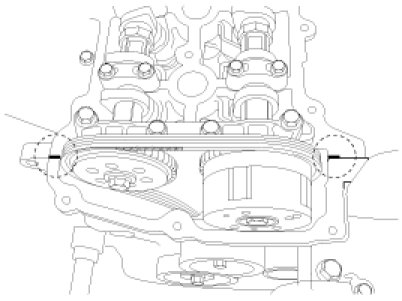 1. Align the timing marks of the camshaft sprocket with the upper surface of the cylinder head to make No.1 cylinder be positioned at TDC.
