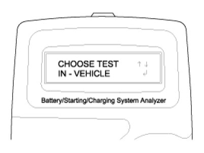 2. The tester will ask if the battery is connected "IN A VEHICLE" or "OUT OF A VEHICLE". Make your selection by pressing the arrow buttons; then press ENTER.