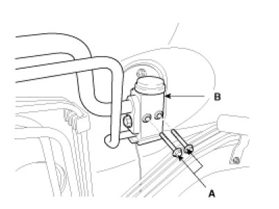 4. Remove the bolts (A) and the expansion valve (B) from the evaporator core.