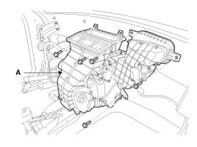 8. Remove the heater & blower unit(A) after loosening mounting bolts.