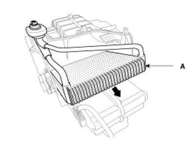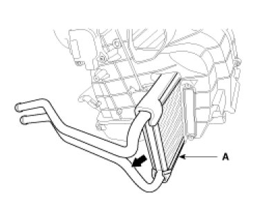 10. Be careful that the inlet and outlet pipe are not bent during heater core removal, and pull out the heater core(A).