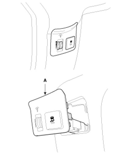 2. Remove the lower side crash pad switch assembly (A) by using the trim remover tool.