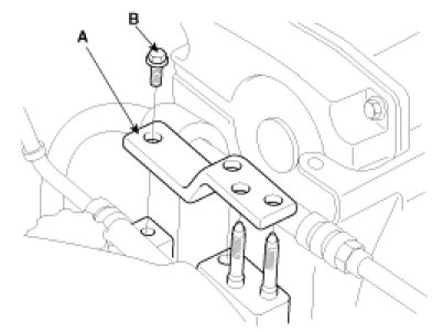 (3) Remove the bolt (B), and then remove the stay plate (A).