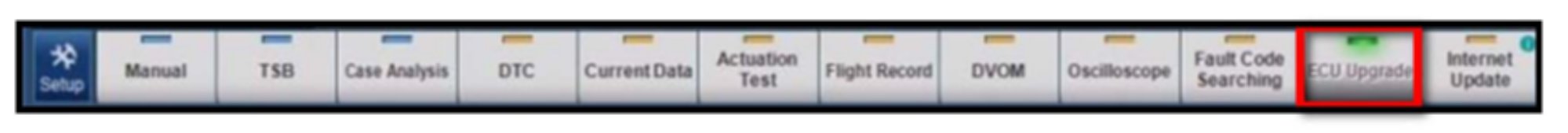 6. Once back at the GDS Main Screen, select ECU Upgrade, then select Auto Mode, and then AlT in the left ECU Upgrade column, then perform the ECU upgrade in accordance with normal GDS tool ECU upgrade procedures. Complete steps 5 to 8 as outlined in the Manual Upgrade procedure below.