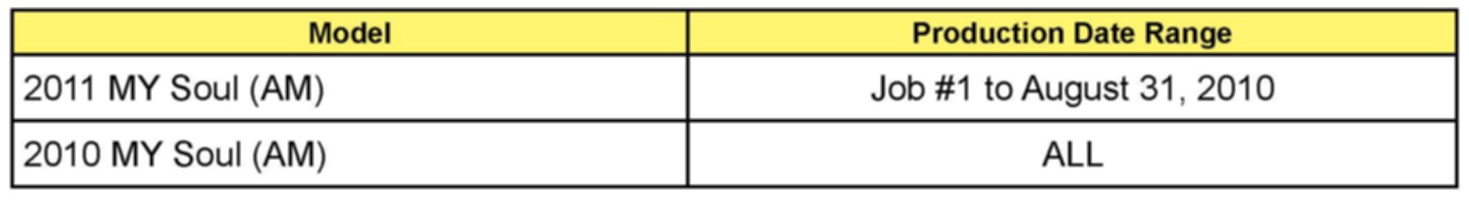 MODEL: 2010-11MY Soul (AM) w/2.0L