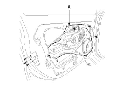 6. Loosen the door module mounting bolts, remove the door module (A).