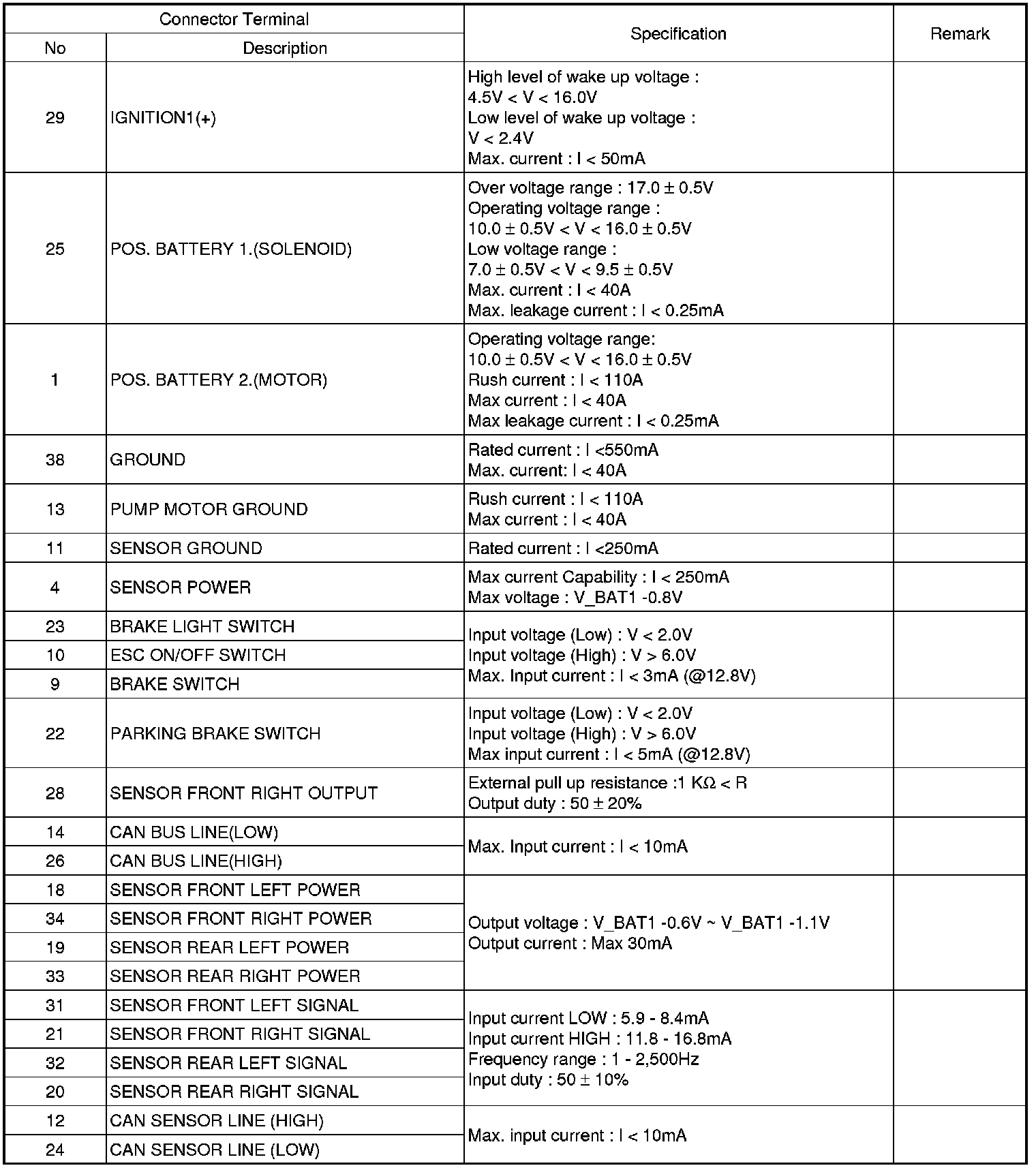 ESC connector input/output