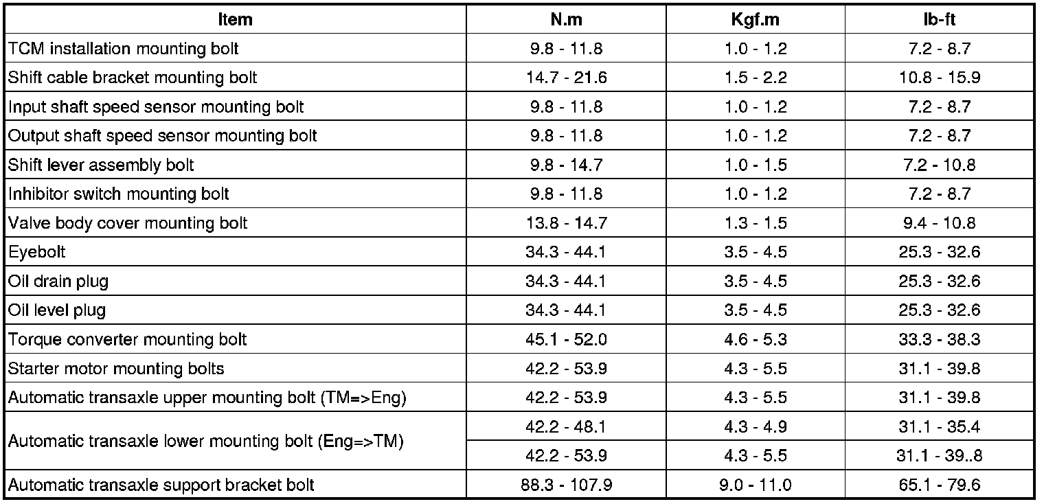 Automatic Transmission/Transaxle: Application and ID: Specifications