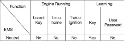 The user password teaching is only accepted by a "learnt" PCM(ECM). Before first teaching of user password to an PCM(ECM), the status of the password is "virgin" No limp home function is possible.