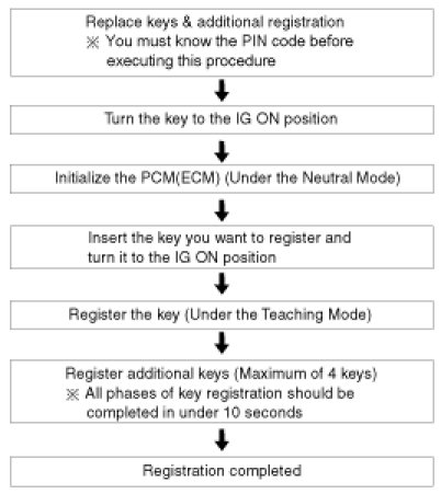 Key teaching must be done after replacing a defective PCM(ECM) or when providing additional keys to the vehicle owner.
