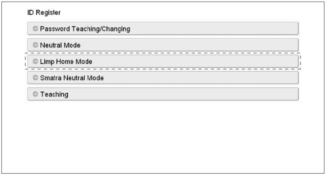 If the PCM(ECM) detects the fault of the SMARTRA or transponder, the PCM(ECM) will allow limp home function of the immobilizer. Limp home is only possible if the user password (4 digits) has been given to the PCM(ECM) before. This password can be selected by the vehicle owner and is programmed at the service station.