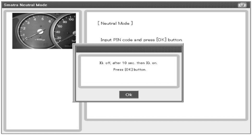 Ignition key (regardless of key status) is inserted and after IGN ON. If receiving the correct vehicle password from GST, SMARTRA can be neutralized. The neutralization of SMARTRA is possible if DPN is same as the value inputted by GST.