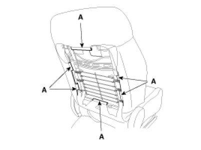 8. After removing the hogring clip on the front of seat back cushion and remove the seat back cover (A).