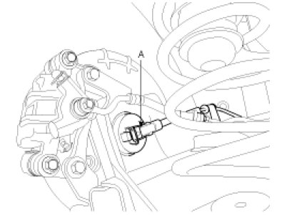 1. Remove the connector after(A) removing the rear wheel speed sensor clip.