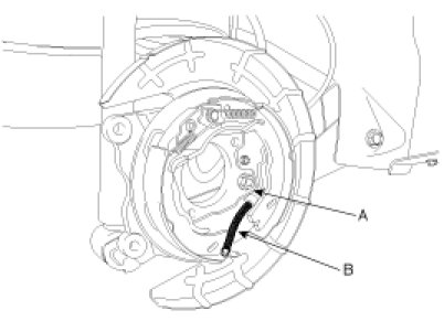7. Remove the parking brake cable (B) from the brake shoe (A).
