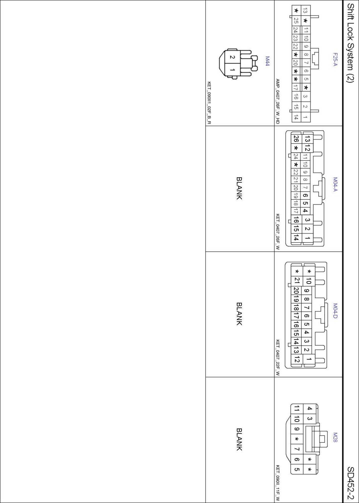 Shift Lock System (2) Connector Pin Outs: