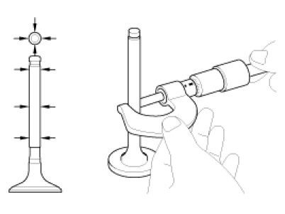 (2) Using a micrometer, measure the diameter of the valve stem.
