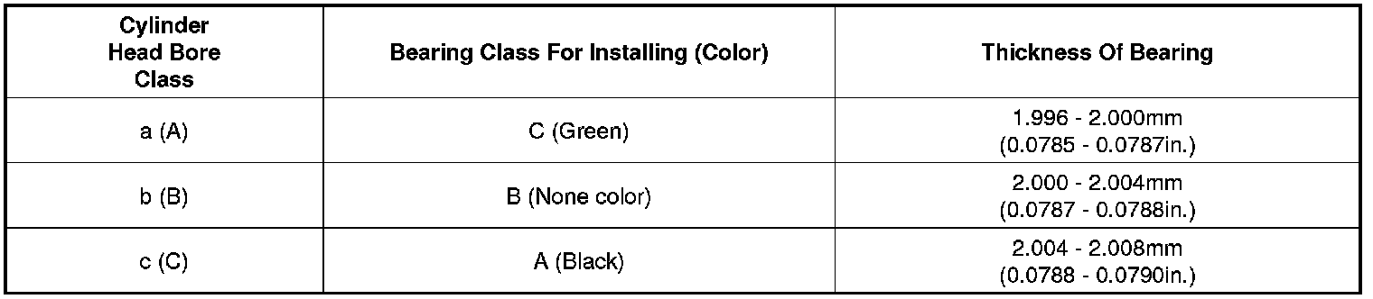 2. Select class of camshaft bearing same as class of cylinder head as shown on the table below.