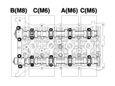 (3) Remove the camshaft bearing cap (A), in the sequence shown.