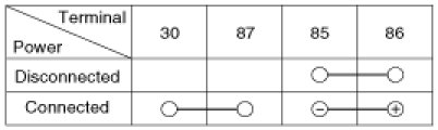 4. There should be no continuity between the No.87 and No.30 terminals when power is disconnected.