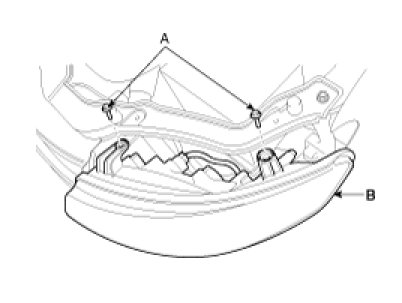 2. Loosen the mounting bolts (2EA)(A) of head lamp. Remove the head lamp assembly(B) after disconnecting the lamp connectors.