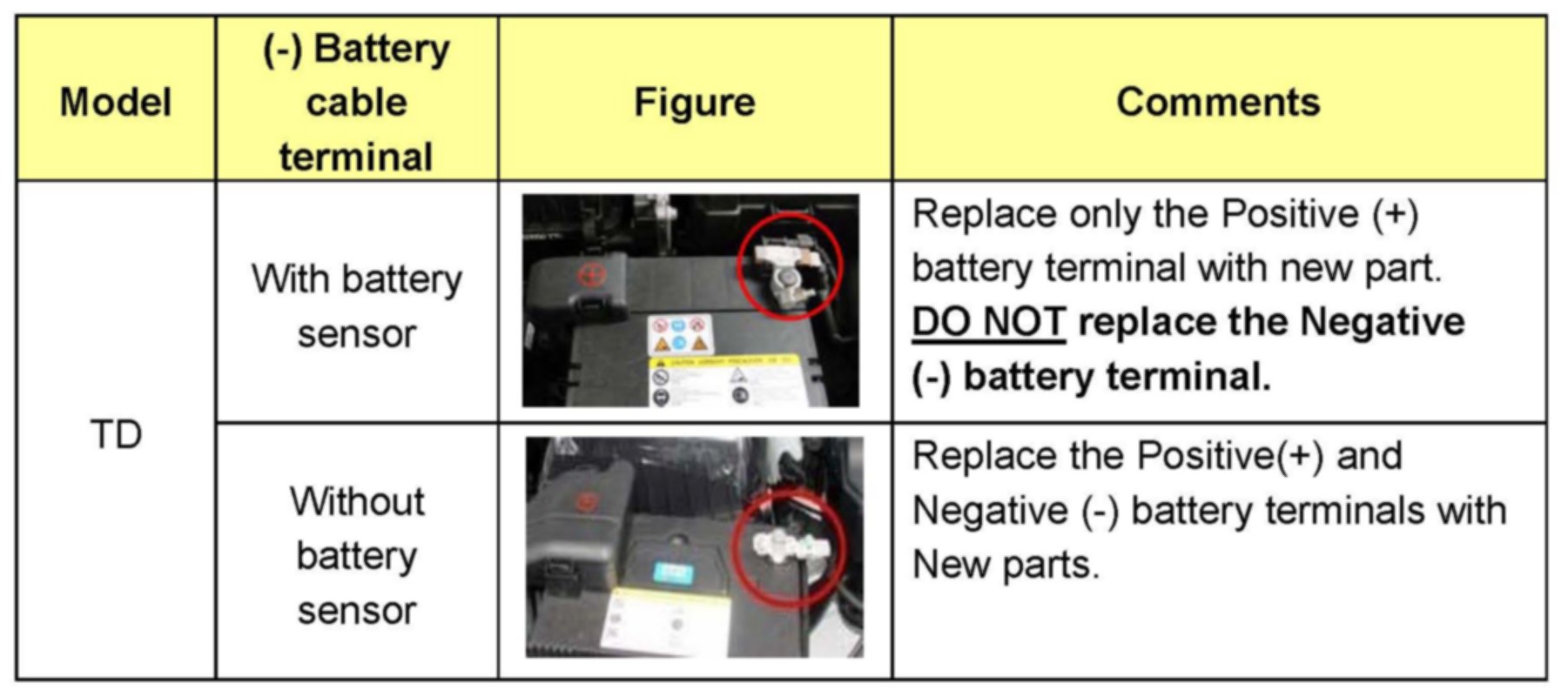 Condition 2: Without battery sensor (B) Replace both (+) / (-) battery terminals with new parts.