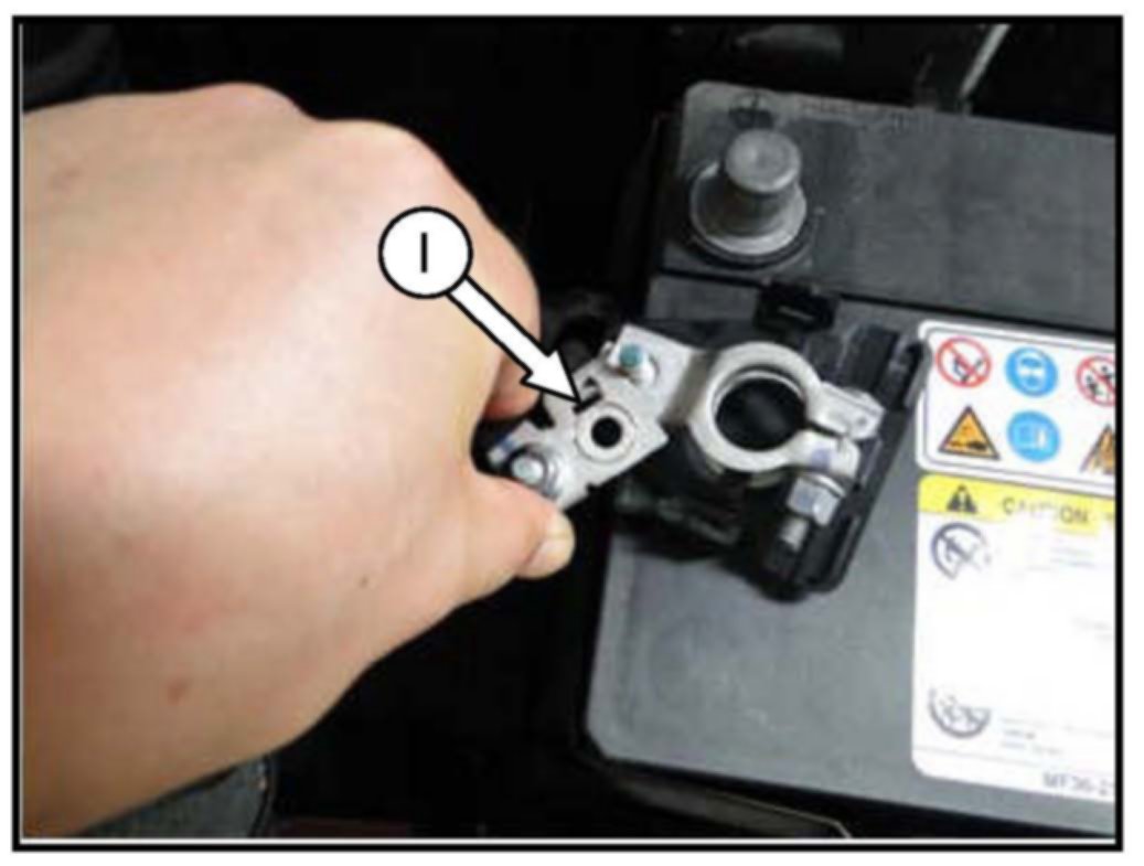 5. Separate the Positive (+) battery cable (I) from the battery cable terminal.