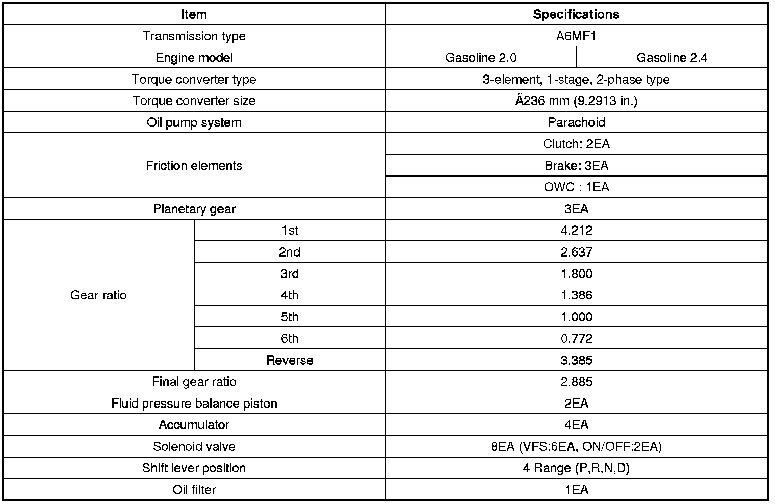 Automatic Transmission/Transaxle: Application and ID: Specifications