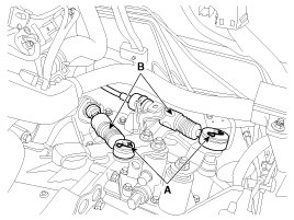 6. Disconnect the concentric slave cylinder tube (A) after removing the pins (B).