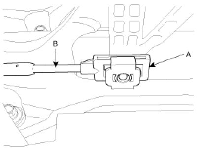 6. Disconnect the select or shift cable assembly (B) after removing the pin (A).