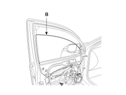 2. Carefully adjust the glass (B) until you can see the bolts, then loosen them, separate the glass from the glass run and carefully pull the glass out through the window slot.